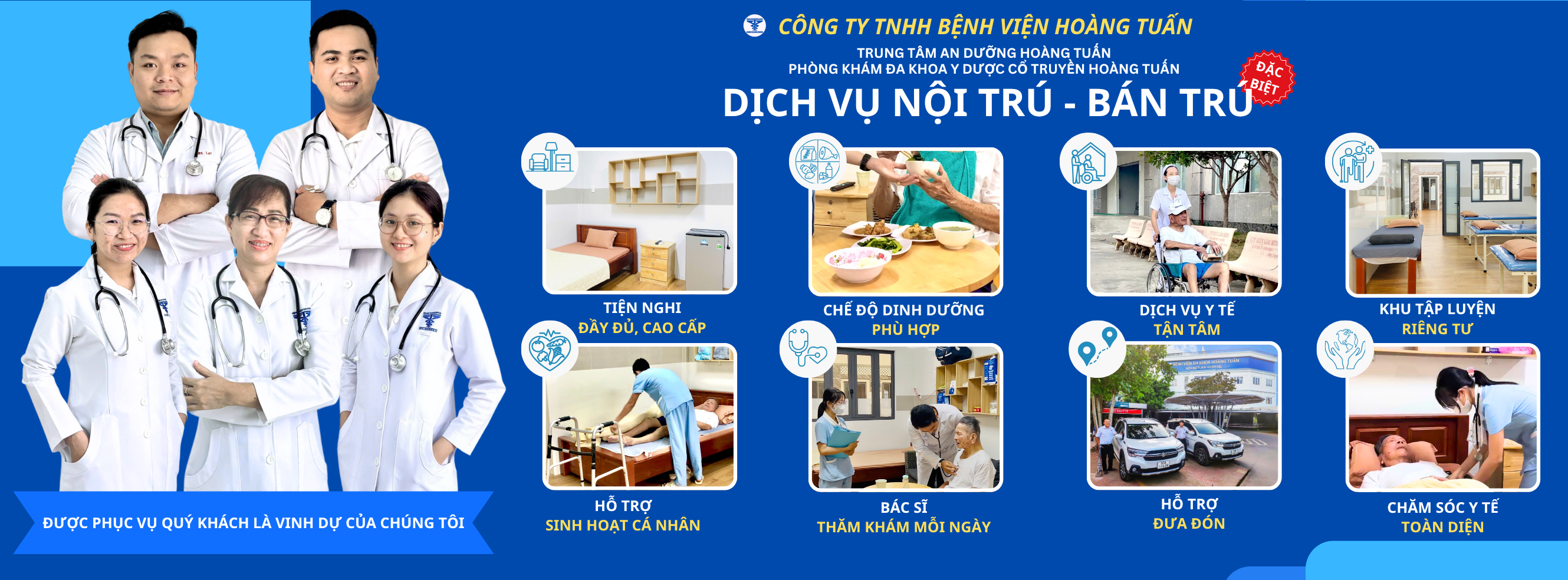 Trải qua hơn 05 năm đưa vào hoạt động, ngày nay Trung tâm An Dưỡng Hoàng Tuấn không chỉ đơn thuần là một cơ sở y tế, mà còn là một điểm tựa vững chắc chăm sóc sức khỏe cộng đồng. Với phương châm “Được phục vụ quý khách là vinh dự của chúng tôi“, chúng tôi luôn lấy người bệnh làm trung tâm, không ngừng nỗ lực mang đến dịch vụ y tế chất lượng cao, tận tâm và chuyên nghiệp. Với đội ngũ y bác sĩ giàu kinh nghiệm, trang thiết bị hiện đại – tiên tiến, Trung tâm An Dưỡng Hoàng Tuấn đã trở thành địa chỉ khám chữa bệnh uy tín cho người dân.