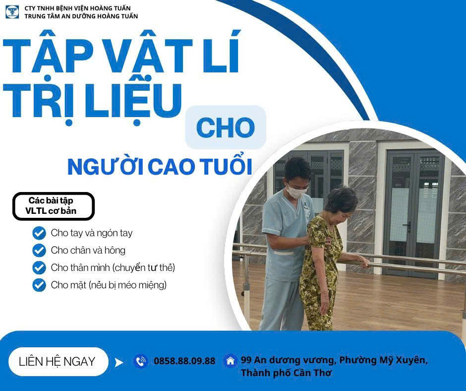 Tập vật lý trị liệu cho người cao tuổi sau tai biến tập trung vào phục hồi vận động, thăng bằng, sức mạnh cơ bắp và chức năng sinh hoạt hàng ngày, bao gồm các bài tập tay (nắm bóng, xoay khớp), chân (gập duỗi, đứng thăng bằng, nhón gót, tập có hỗ trợ), thân mình (lăn, trồi, ngồi dậy) và các bài tập chuyên biệt cho mặt (cười, chu môi) để cải thiện di chứng, ngăn ngừa teo cơ, giảm cứng khớp, và phòng ngừa té ngã, cần thực hiện sớm và kiên trì, tốt nhất có sự hướng dẫn của chuyên gia.