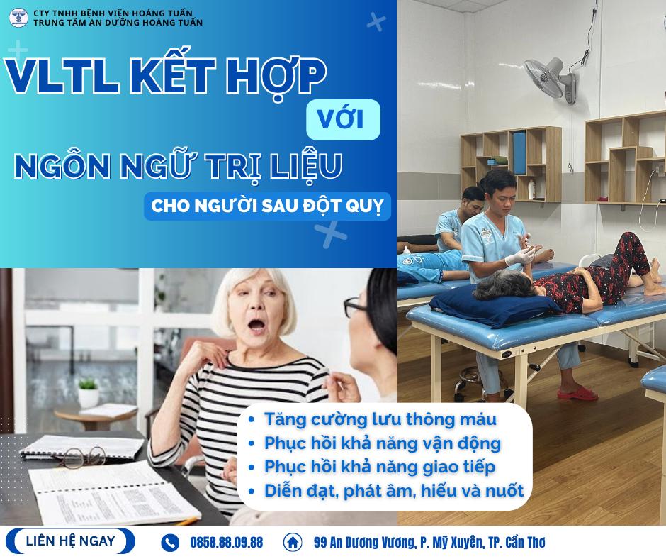 Vật lý trị liệu (VLTL) kết hợp ngôn ngữ trị liệu giúp phục hồi toàn diện sau đột quỵ bằng cách cải thiện chức năng vận động và giao tiếp.